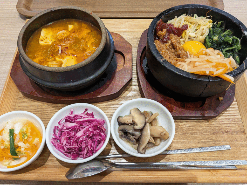 今回は、PRANZO A。パスタはそれぞれ、ムール貝とオーガニックほうれん草のトマトソース、自家製パンチェッタと新玉ねぎのカルボナーラを選びました。