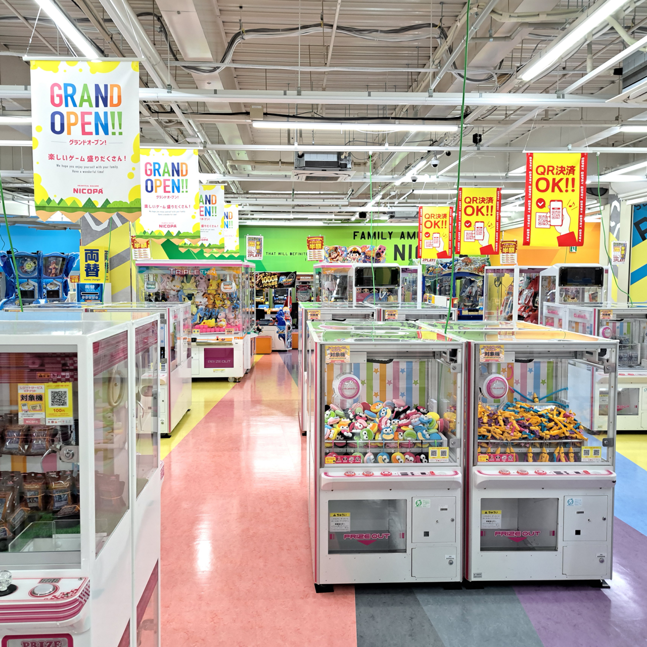 明るく広々とした空間が広がります。最新のゲーム機がずらりと並び、お子様から大人まで、誰もが夢中になれる活気あふれるアミューズメント施設が登場。