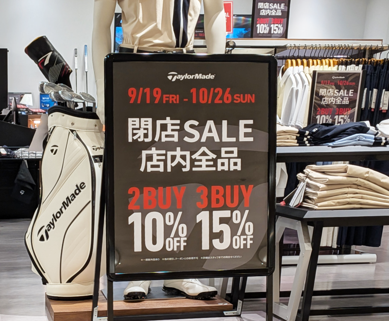 【岡崎市】イオンモール岡崎内の「テーラーメイド岡崎店」が10/26閉店へ。閉店セール実施中