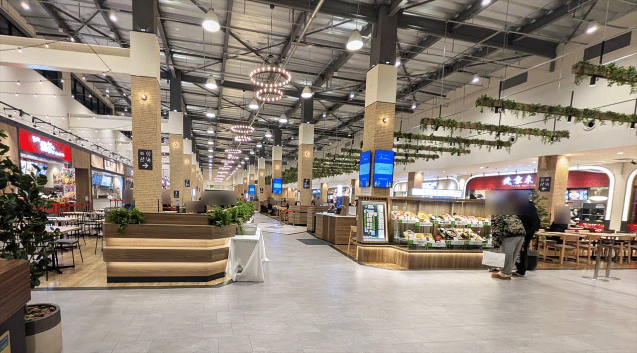フードコート内を見渡してみると、席はほぼスムーズに確保でき、空席も目立つ状態でした。オープン直後のように、席が空いた瞬間に埋まるという状況ではなく、ゆっくり席を探せる余裕があります。
