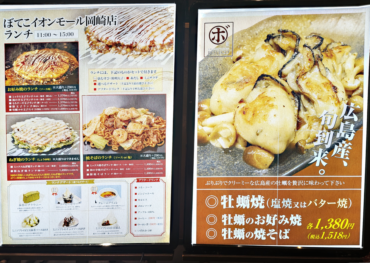 【岡崎市】イオンモール岡崎「ぼてこ」のランチ! 冬限定・広島産牡蠣のお好み焼が絶品
