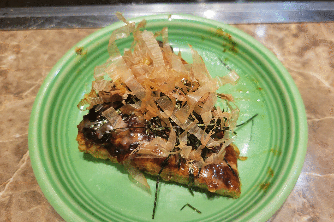 一口食べると、牡蠣のぷりぷりとした食感とともに、濃厚な旨味が口いっぱいに広がりました。お好み焼の生地のふわふわ感と、牡蠣のクリーミーさが絶妙にマッチしています。