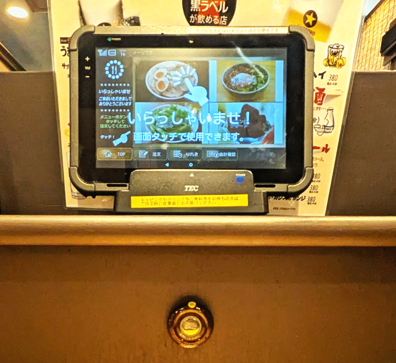 注文方法はタッチパネル式に変更され、お会計もセルフレジが導入されていました。また、お冷やおしぼりもセルフサービスとなっており、スムーズに食事が楽しめるよう効率化が進んでいる印象です。