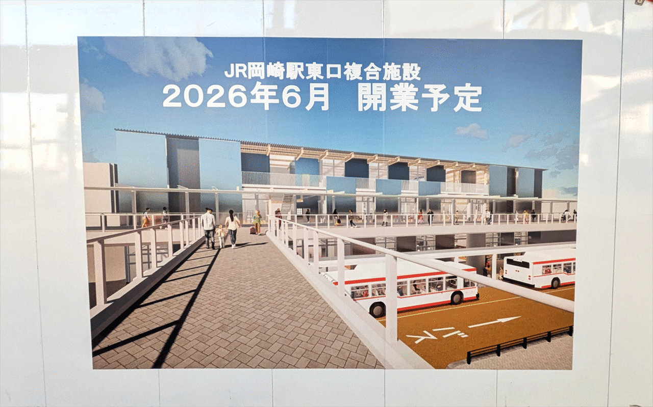 【岡崎市】JR岡崎駅東口で工事中の、2026年春開業予定の複合商業施設。2月現在の様子は?