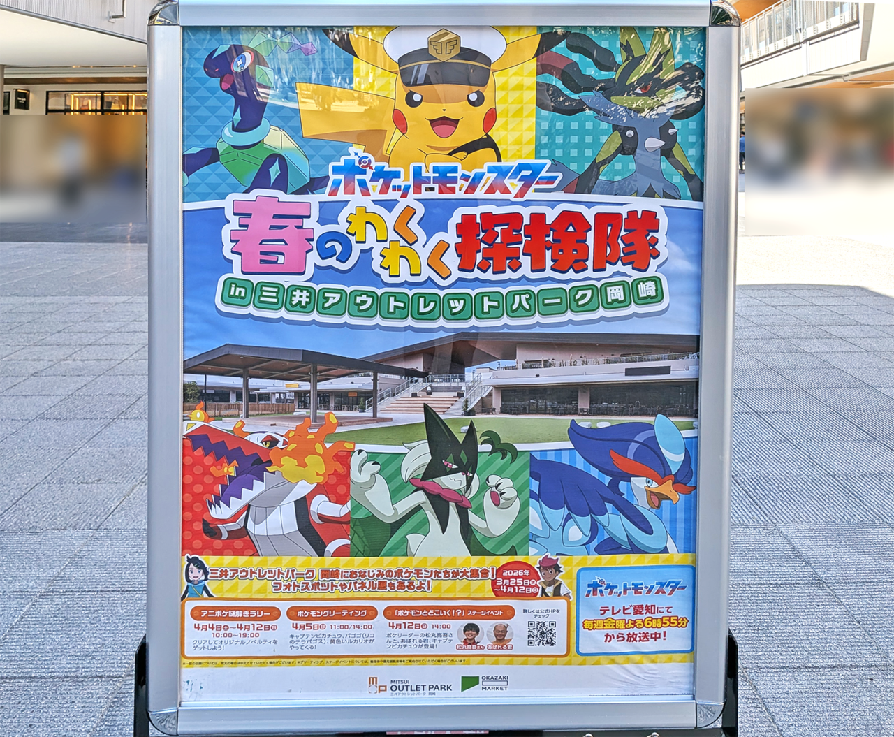 三井アウトレットパーク 岡崎にて開催中の「「ポケットモンスター」春のわくわく探検隊」。いよいよ最終日となる、本日2026年4月12日(日)には、大人気のテレビ番組「ポケモンとどこいく!?」の特別ステージイベントが開催されます。